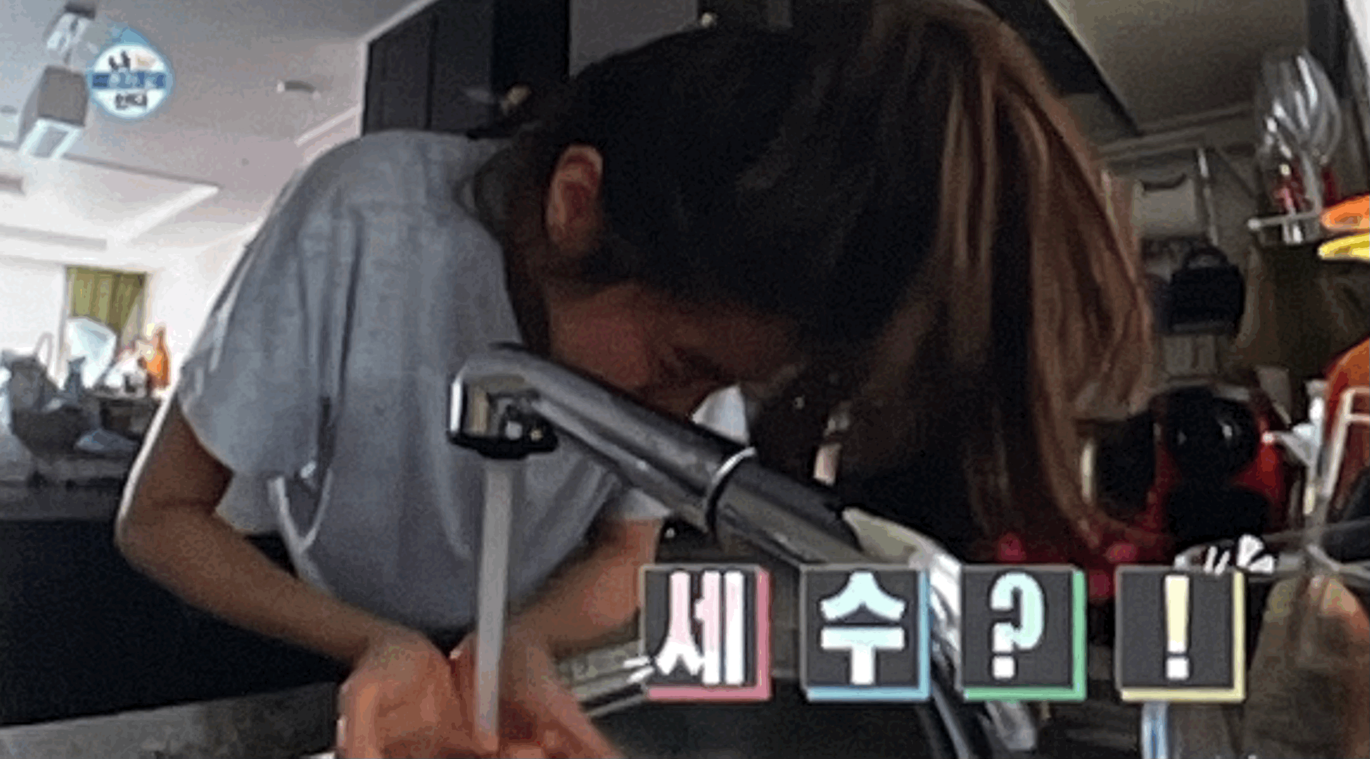 그리고 또 재밌는 것은 세수를 싱크대에서 하더라고요 ㅋㅋㅋ